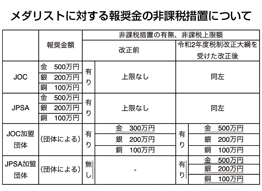 メダリストに対する報奨金の非課税措置について