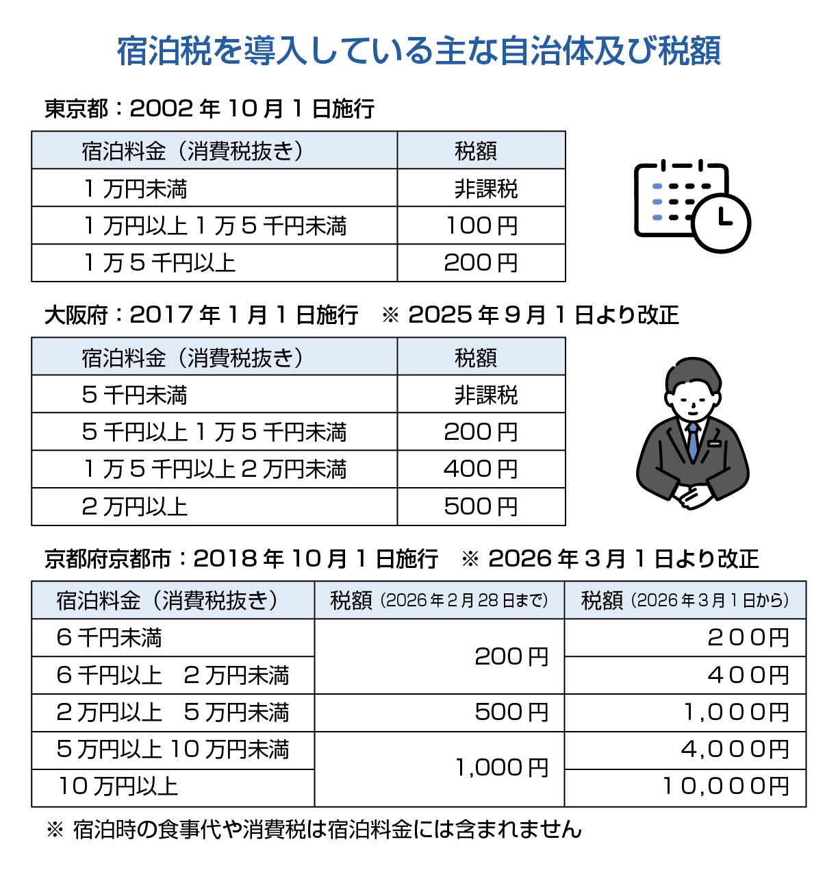 ♠今後も増える宿泊税導入税額引き上げの自治体も